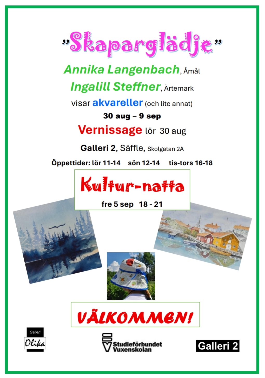 I virkestorken på Baldersnäs var vi 8 konstnärer som ställde ut. Vädret var dåligt mest hela tiden, men trots det kom drygt 330 besökare och tittade runt. Nedan några bilder från akvareller på mina 2 bord.